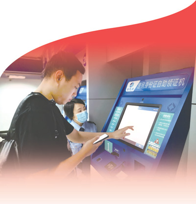 2020年10月27日,廣州公安機(jī)關(guān)工作人員在幫助市民使用居民身份證自助領(lǐng)證機(jī)。
