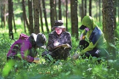 工作人員在河北塞罕壩機械林場采集數(shù)據(jù)(2017年7月12日攝)。新華社記者 王曉攝