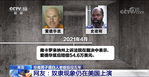 在美國,種族歧視事件層出不窮,而時至今日,非洲裔遭受白人奴役的現象仍然沒有絕跡。多年前,南卡羅來納州發生了一起有智力障礙的非裔男子被白人餐廳老板奴役長達5年的案件。近日,南卡羅來納州上訴法院裁定,對案件受害者的賠償金應該加倍,由此前的27.3萬美元賠償金增至54.6萬美元。針對這一事件,有網友譴責道,美國現在還有這種事情發生,像是回到了奴隸制時代。