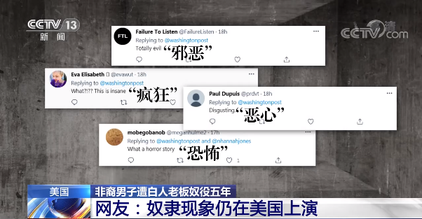 還有網友評論稱:“50萬美元不足以賠償這名非裔男子,就連工作的報酬也不夠。10年的監禁也不足以來懲罰這個殘忍的白人老板。”
