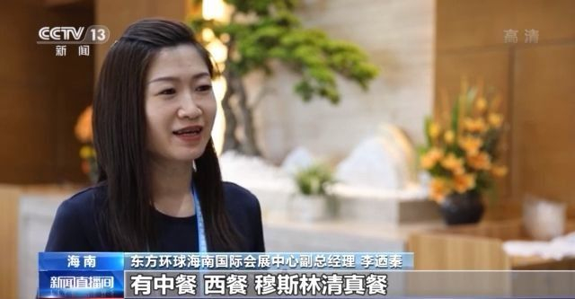 東方環球海南國際會展中心副總經理 李迺秦:我們還應急調配了16輛電瓶車,在展會期間會供觀眾和一些嘉賓往返穿梭酒店和展會現場。特別準備了不同風味的各地的美食,有中餐、西餐、穆斯林清真餐。另外還有一些商務套餐,包括我們現在的餐廳是海南當地的特色美食,餐廳可以現場點現場出品,讓來自各地的觀眾、客商能夠體驗到多元化的餐飲服務。