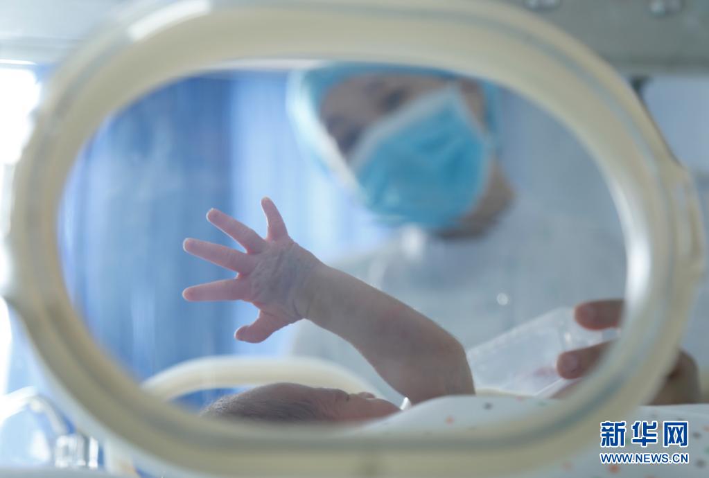 5月11日,在河北省邢臺市南和區人民醫院新生兒科,一名護士在護理新生兒。