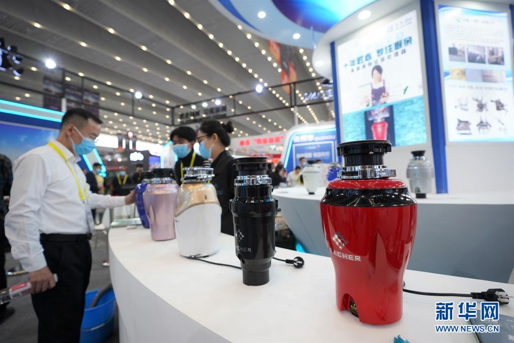 5月11日,觀眾在參觀展出的廚余垃圾處理設備。
