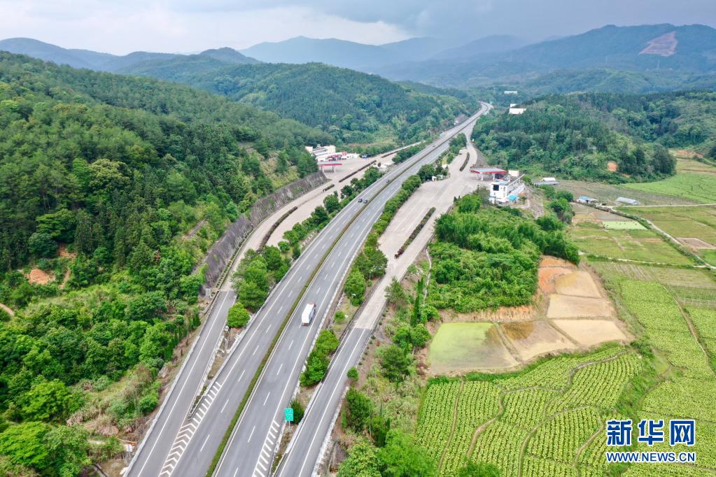 5月13日,車輛行駛在福銀高速福建省三明市尤溪縣境內(nèi)路段(無人機照片)。