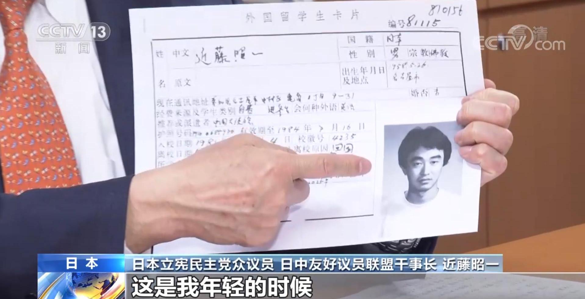日本立憲民主黨眾議員、日中友好議員聯盟干事長 近藤昭一:這是我年輕的時候,這是在我畢業多年之后去參加校友會的時候找到的。我就讀的是北京語言學院,現在已經是北京語言大學了,我參加北京語言大學校友會的時候,提到我當時留學時候的學生卡還被保存著,所以復印給我留念。我留學的時候就認識到中國是擁有悠久歷史的文明古國,但是我1981年開始在中國留學的時候,當時有車的人很少,現在很多中國人都開著自己的汽車,這些年來中國的經濟發展令人印象深刻,人民的生活變得富足。