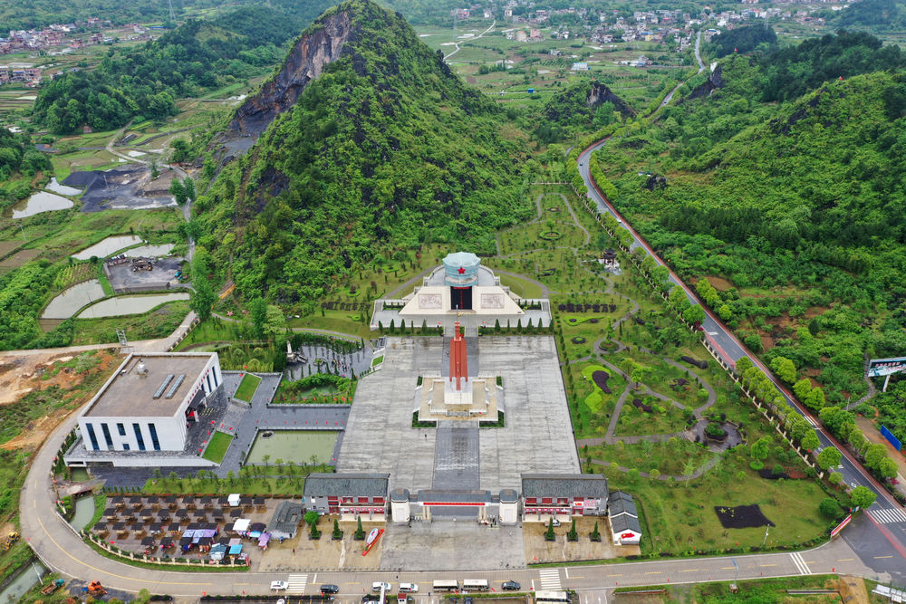廣西灌陽縣湘江戰役新圩阻擊戰酒海井紅軍紀念園(無人機照片,4月27日攝)。新華社記者陸波岸攝