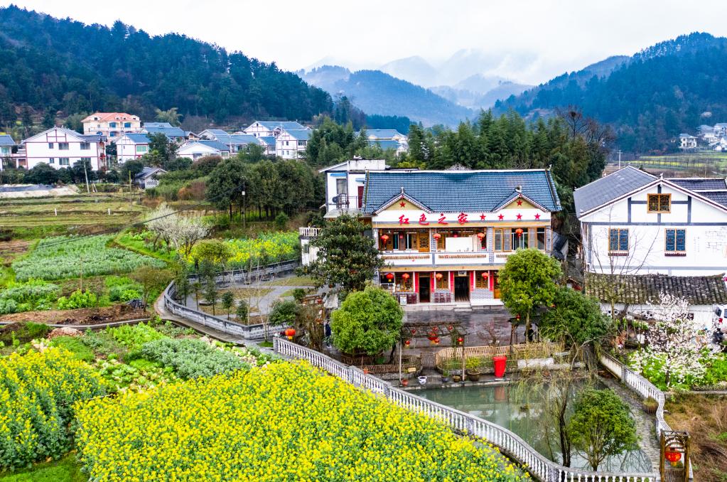 遵義市楓香鎮(zhèn)花茂村村民王治強經(jīng)營的“紅色之家”農(nóng)家樂(2020年2月28日攝,無人機照片)。新華社記者陶亮攝