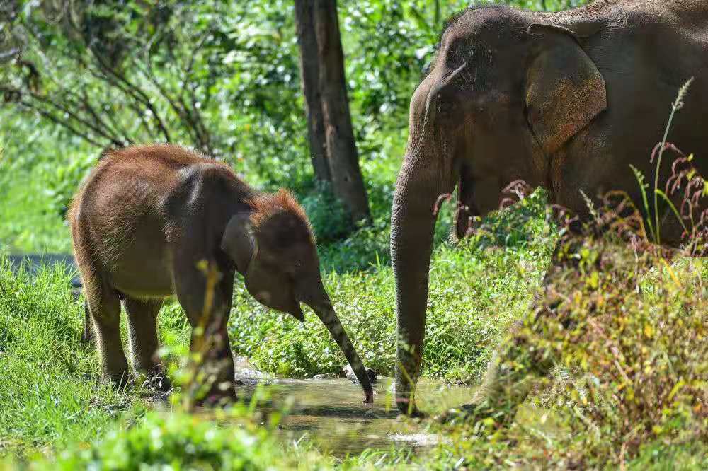 ▲ 2019年11月13日,在云南亞洲象種源繁育及救助中心附近,兩只亞洲象參加野化訓(xùn)練。