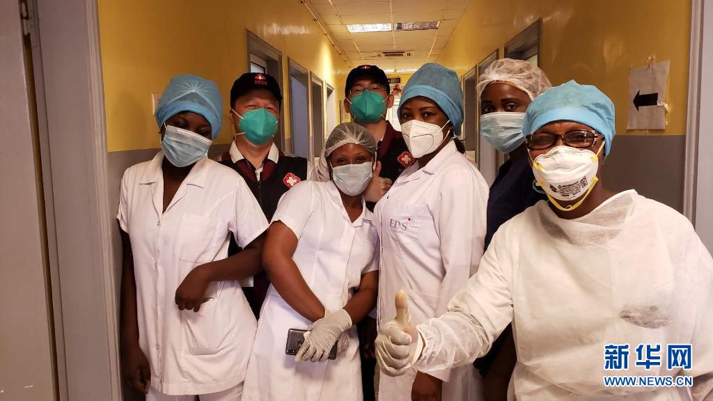 2020年5月26日,中國抗疫醫(yī)療專家組在剛果(布)首都布拉柴維爾指導(dǎo)新冠肺炎病房建設(shè)時,與當?shù)匾痪醫(yī)務(wù)人員合影。新華社發(fā)
