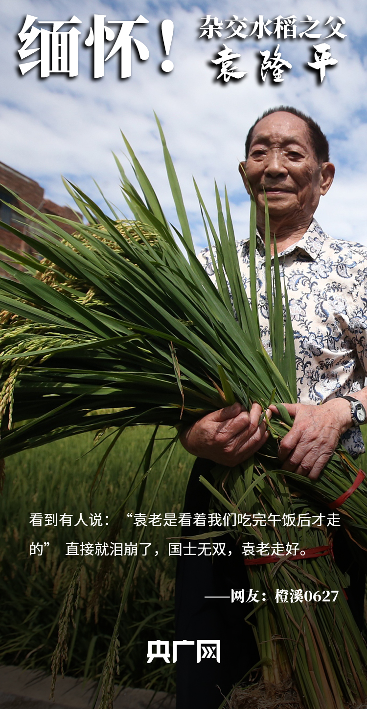 淚目!網友集體緬懷袁隆平:您是看著我們吃完午飯才走的
