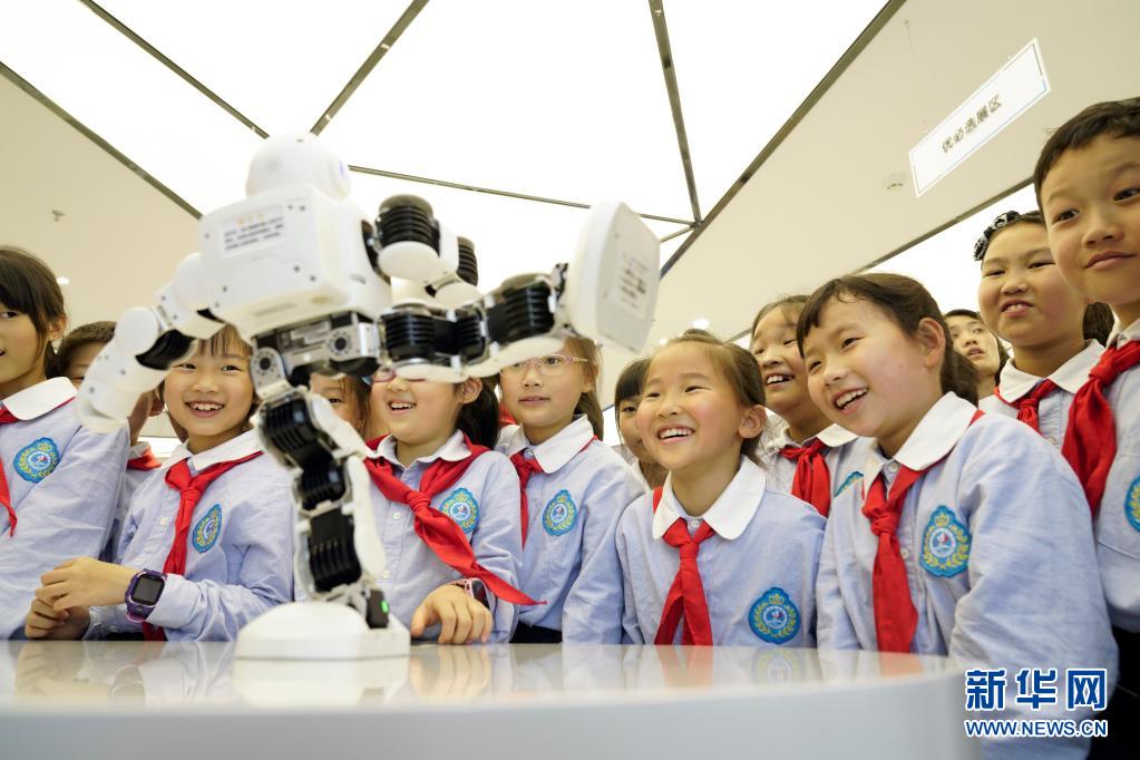 5月31日,重慶市北碚區(qū)云頂小學(xué)的孩子們在重慶兩江機(jī)器人展示中心觀看機(jī)器人表演。