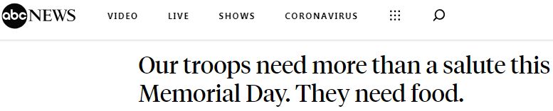 “在這個陣亡將士紀念日,我們的軍隊需要的不只是一個敬禮。他們需要食物!