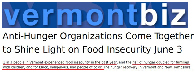 以佛蒙特州為例。該州有三分之一的居民在過去一年中經歷了食品短缺,而少數族裔和有孩子的家庭一樣,饑餓風險要比其他群體高出一倍。