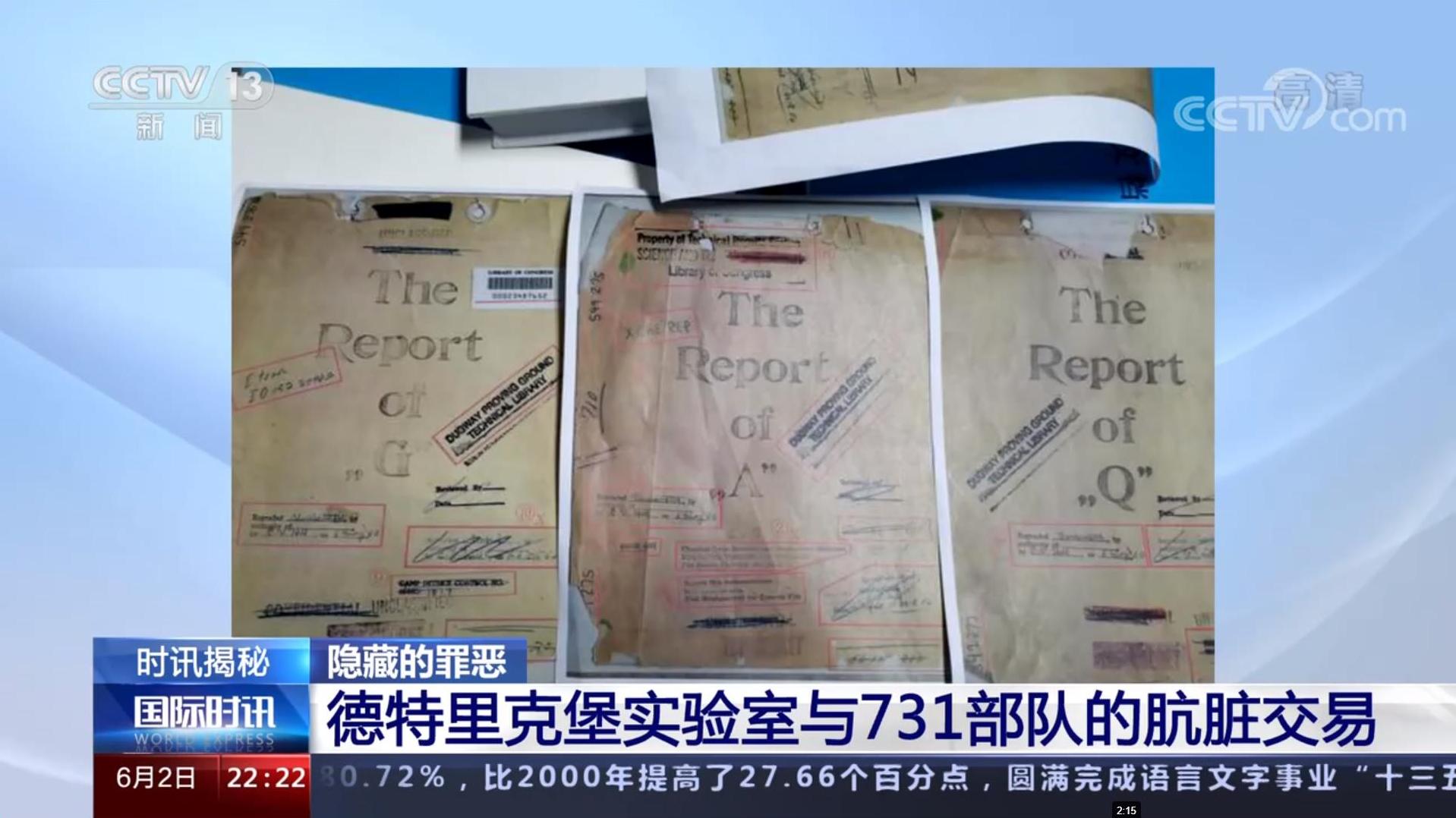 這些數據和資料,包括大量731部隊的實驗報告書,以及8000多張有關用細菌武器做活人試驗和活人解剖的病理學標本和幻燈片等。檔案顯示,731部隊進行人體實驗的鼻疽菌、炭疽菌和鼠疫菌實驗報告的封面,都有“馬里蘭州德特里克堡基地生物戰實驗室化學部隊研究與開發部”的字樣。