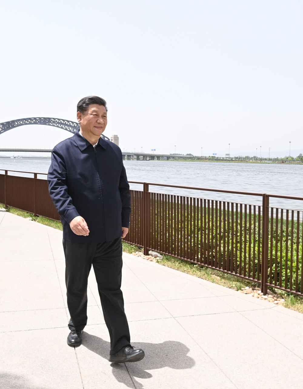 2020年5月11日至12日,習近平在山西考察。這是5月12日,習近平在汾河太原城區晉陽橋段了解生態環保和污染防治等情況。