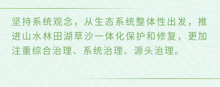 要堅持山水林田湖草沙系統治理,堅持正確的生態觀、發展觀,敬畏自然、順應自然、保護自然,上下同心、齊抓共管,把保持山水生態的原真性和完整性作為一項重要工作,深入推進生態修復和環境污染治理,杜絕濫采亂挖,推動流域生態環境持續改善、生態系統持續優化、整體功能持續提升。