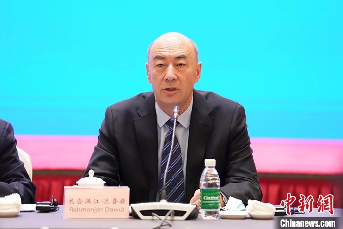 圖為新疆維吾爾自治區政府新聞發言人徐貴相表示,中華民族是一個大家庭,在中國任何一個地方工作,各民族勞動者的權益都受到法律保護。 中新社記者 韓海丹 攝