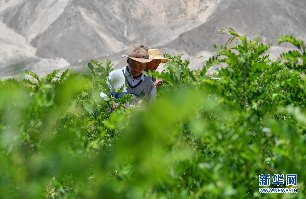 山南市貢嘎縣吉雄鎮劉瓊村村民在檢查樹苗生長情況(6月2日攝)。新華社記者 晉美多吉 攝