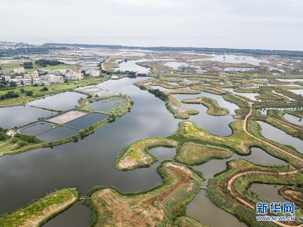 這是6月4日在海口江東新區拍攝的邁雅河區域生態修復項目(無人機照片)。