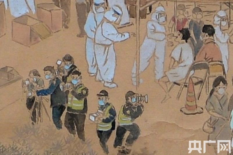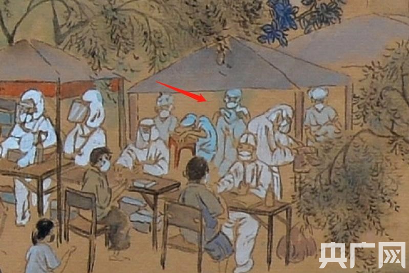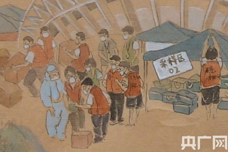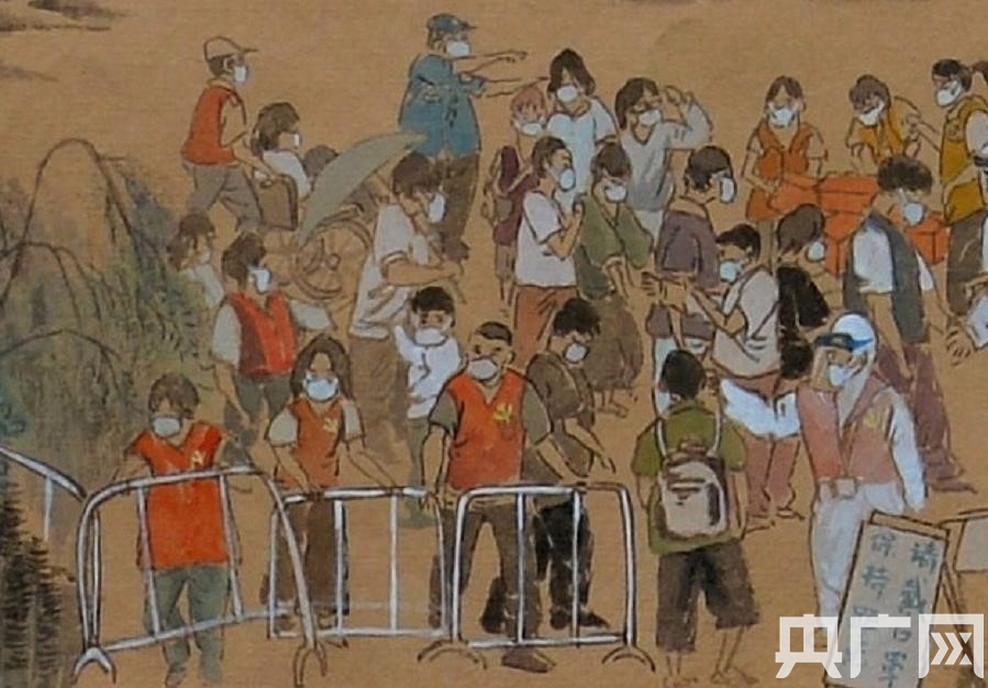值得一提的是,作者還將很多現實中的動人場景也融入其中。比如,多位醫務人員因為太過疲憊,或趴在椅子上休息,或蜷縮在桌子旁;比如,黨員志愿者嚴守一線,維護現場秩序……