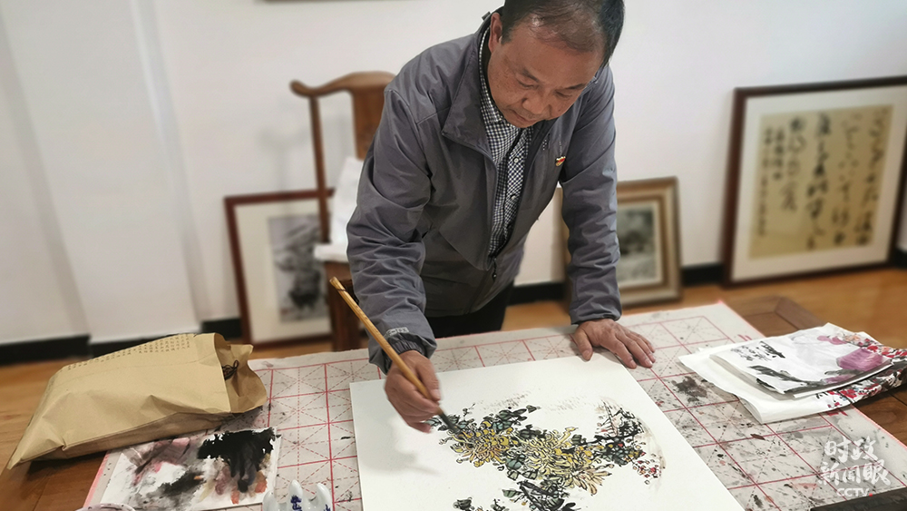 △55歲的魏真盈是社區書畫室的國畫指導老師。(總臺央視記者覃思、馬超拍攝)