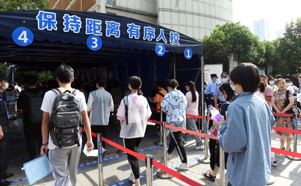 在安徽省合肥市五十中學天鵝湖校區考點,考生們有序進入考場。新華社記者 周牧 攝