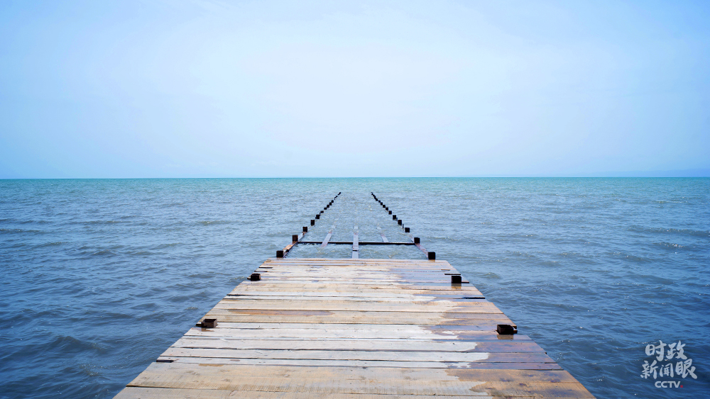 △向湖水延伸的棧橋(總臺央視記者彭漢明拍攝)