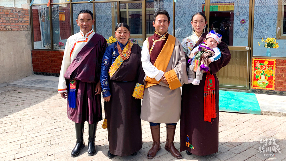 △索南才讓(左一)一家當(dāng)天拍攝的全家福(總臺央視記者段德文拍攝)