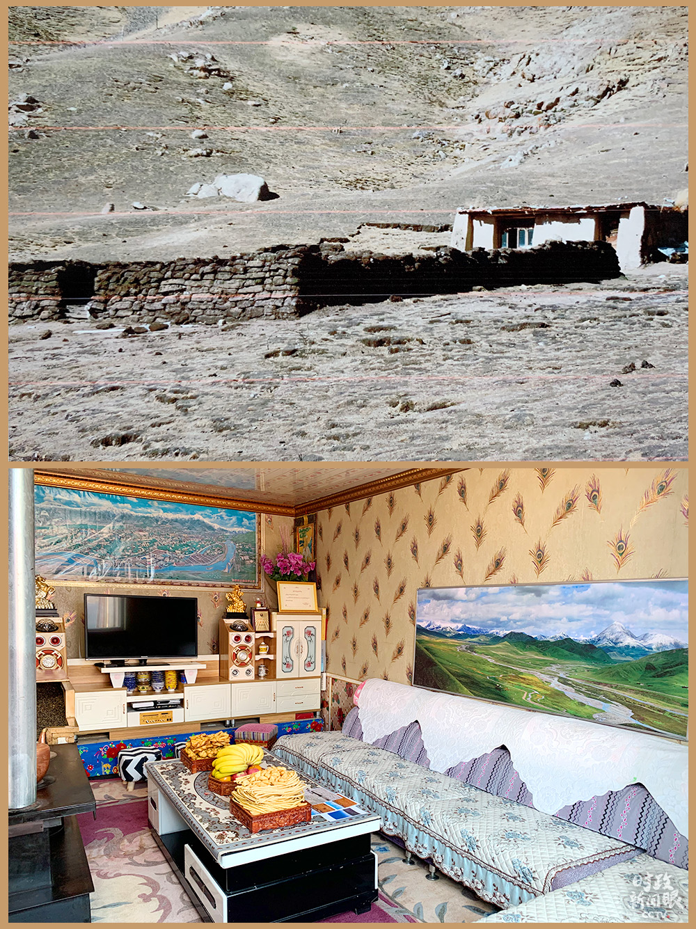 △索南才讓一家新舊房屋對比,舊居拍攝于2014年前。(總臺央視記者邢彬、段德文拍攝)