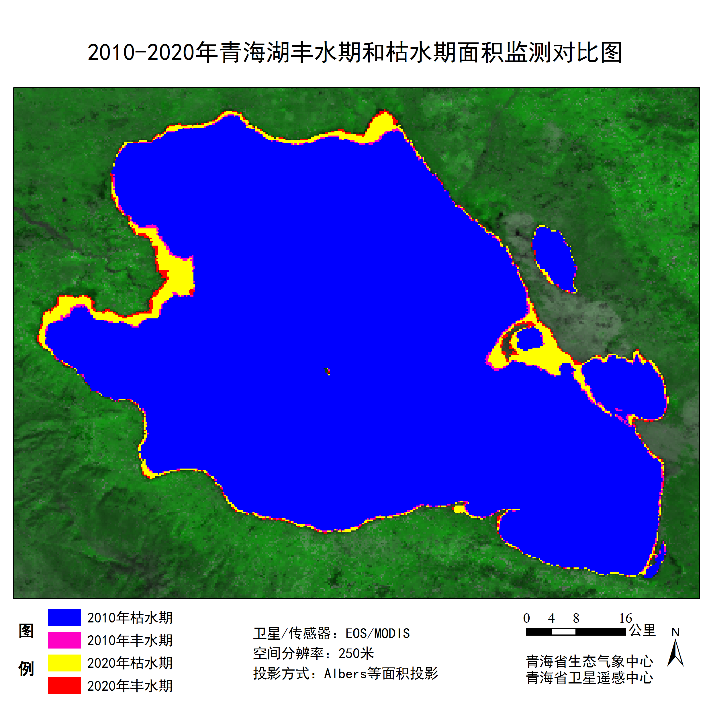圖為2010年至2020年青海湖豐水期和枯水期面積監(jiān)測對比圖。來源:青海省生態(tài)氣象中心 青海省衛(wèi)星遙感中心