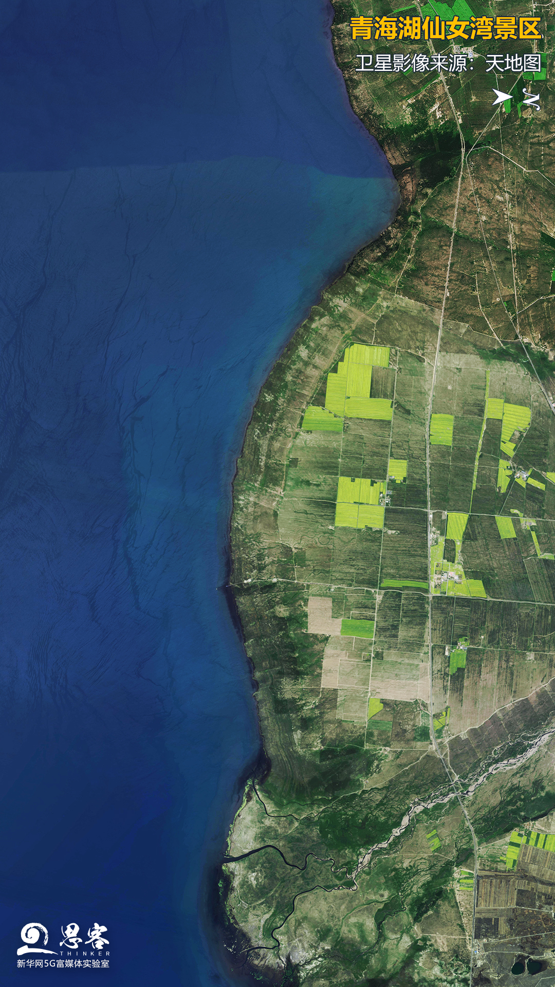 衛(wèi)星視角下的青海湖仙女灣景區(qū)。衛(wèi)星影像來源:天地圖