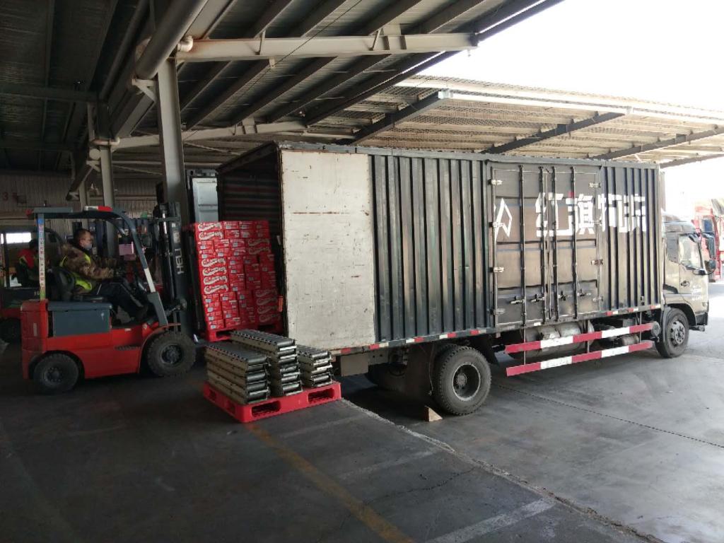 在蘭州紅旗物流有限公司倉儲基地,車輛正在裝運貨物。(受訪者供圖)