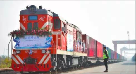 2018年,中歐(武漢)班列軍運會主題列車“兵兵號”從武漢臨空港經濟技術開發(fā)區(qū)(東西湖區(qū))中鐵聯(lián)集武漢中心站發(fā)車,沿著“絲路”大通道,駛向德國漢堡。圖片來源:人民日報