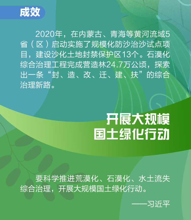 “人類只有一個地球家園。荒漠化防治是關系人類永續發展的偉大事業。”黨的十八大以來,各地區、各部門深入貫徹習近平生態文明思想,牢固樹立綠水青山就是金山銀山理念,統籌山水林田湖草沙系統治理,深入推進大規模國土綠化行動,國土綠化事業取得新進展新成效。