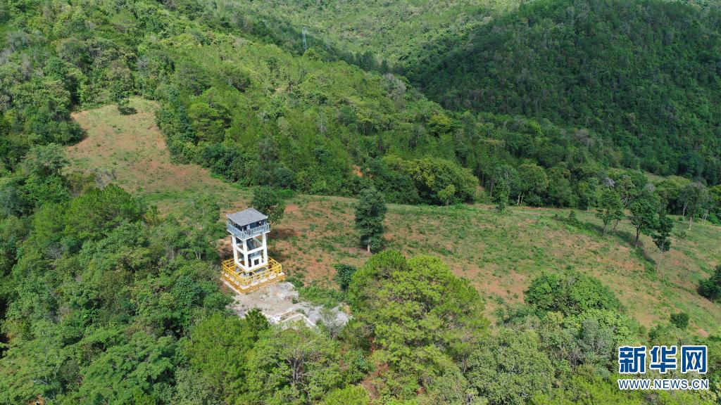 航拍大象食物源基地監測塔(6月15日攝)。新華網 趙普凡 攝.