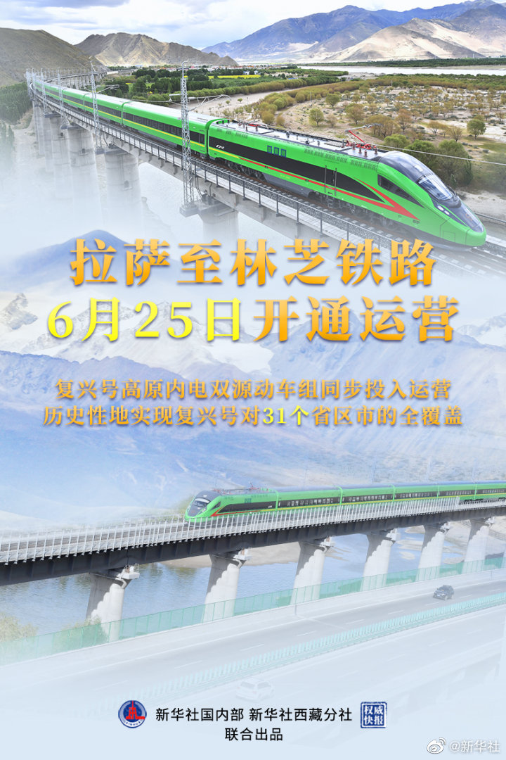 新華社北京6月24日電(記者樊曦、劉洪明)記者24日從中國國家鐵路集團有限公司獲悉,拉薩至林芝鐵路將于6月25日開通運營,復興號高原內電雙源動車組同步投入運營,拉薩至山南、林芝最快1小時10分、3小時29分可達。
