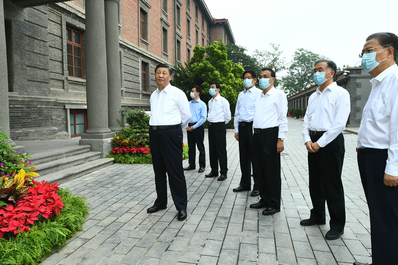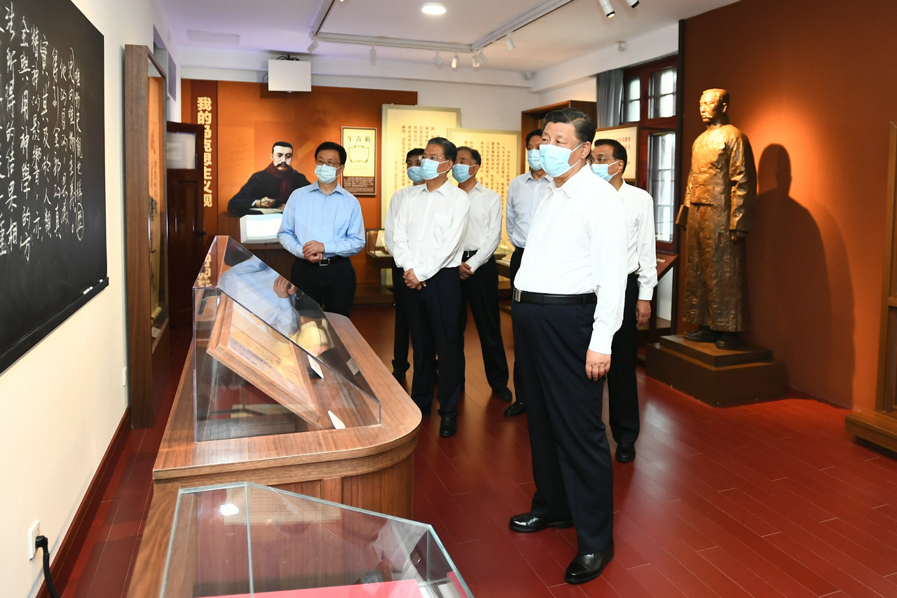 25日下午,習近平帶領中央政治局同志來到北大紅樓,參觀“光輝偉業 紅色序章——北大紅樓與中國共產黨早期北京革命活動主題展”,重溫李大釗、陳獨秀等開展革命活動、推動馬克思主義在中國早期傳播、醞釀和籌建中國共產黨等革命歷史。展廳內,一張張圖片、一件件文物,全面展現了那個時期的光輝歷史。習近平不時停下腳步,詢問相關細節。他指出,北大是新文化運動的中心和五四運動的策源地,最早在我國傳播馬克思主義思想,也是我們黨在北京早期革命活動的歷史見證地,在建黨過程中具有重要地位。要加強紅色資源保護和利用,尊重歷史事實,準確評價歷史,正確學史用史。