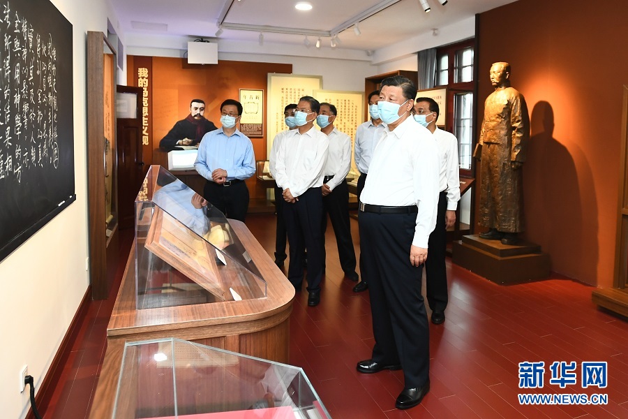 25日下午,習近平帶領中央政治局同志來到北大紅樓,參觀“光輝偉業 紅色序章——北大紅樓與中國共產黨早期北京革命活動主題展”,重溫李大釗、陳獨秀等開展革命活動、推動馬克思主義在中國早期傳播、醞釀和籌建中國共產黨等革命歷史。展廳內,一張張圖片、一件件文物,全面展現了那個時期的光輝歷史。習近平不時停下腳步,詢問相關細節。他指出,北大是新文化運動的中心和五四運動的策源地,最早在我國傳播馬克思主義思想,也是我們黨在北京早期革命活動的歷史見證地,在建黨過程中具有重要地位。要加強紅色資源保護和利用,尊重歷史事實,準確評價歷史,正確學史用史。