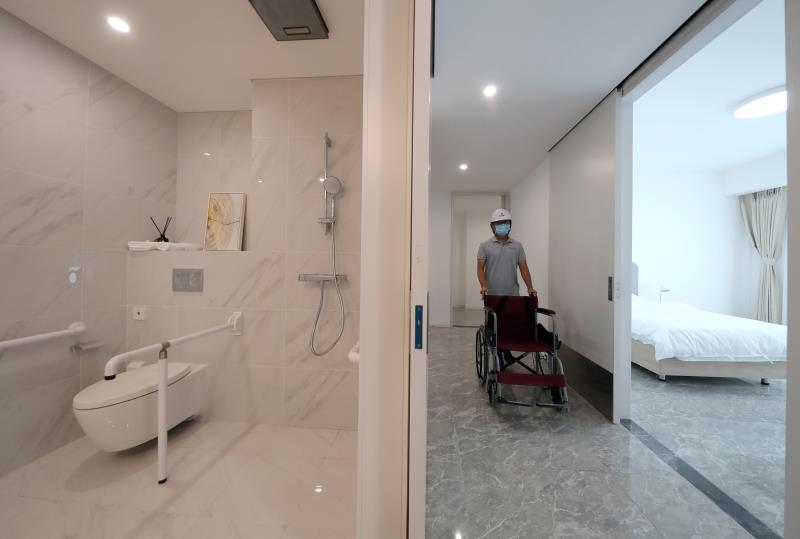 工作人員展示北京冬奧村無障礙建設情況。圖片來自北京市重大項目辦