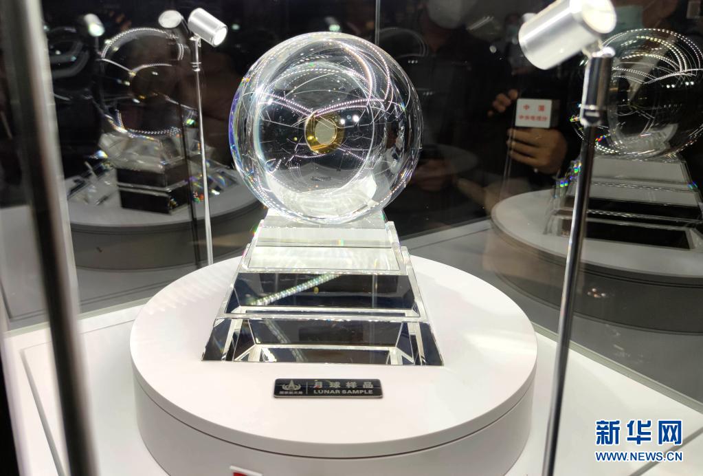 百年中國(guó)科學(xué)家主題展暨月壤展覽上拍攝的陳列的月壤(6月27日攝)。新華社記者 韋驊 攝