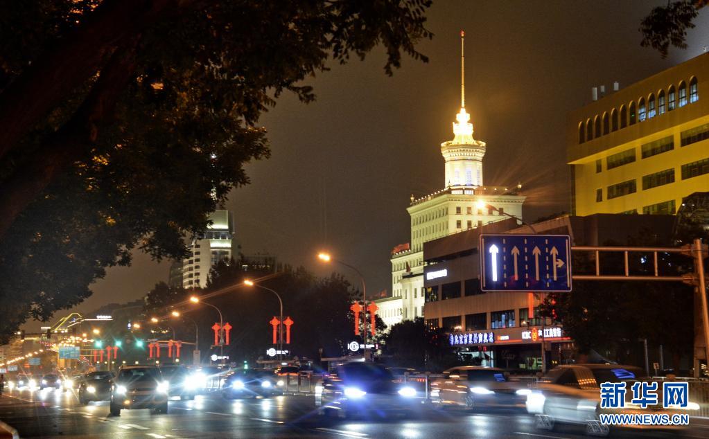 彩燈裝扮的北京市復興路(6月28日攝)。
