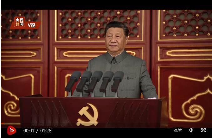 7月1日上午,慶祝中國共產黨成立100周年大會在北京天安門廣場隆重舉行。中共中央總書記、國家主席、中央軍委主席習近平發表重要講話。