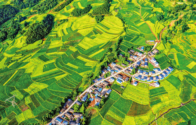 四川省涼山彝族自治州布拖縣把特色種植產業作為經濟發展的重要內容,促進居民增收,助力鄉村振興,構成了一幅幅美麗山鄉新畫卷。圖為被濃綠掩映的布拖縣村落。 中國文聯供圖 鄧邦敏/攝