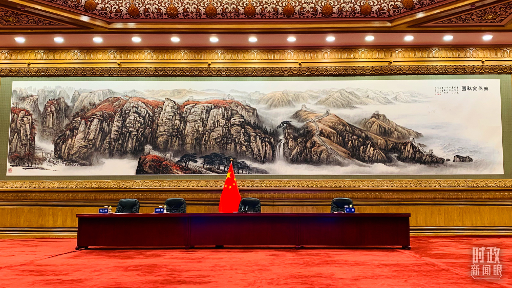 △北京人民大會堂,視頻峰會開始前的會場。(總臺央視記者范一鳴拍攝)