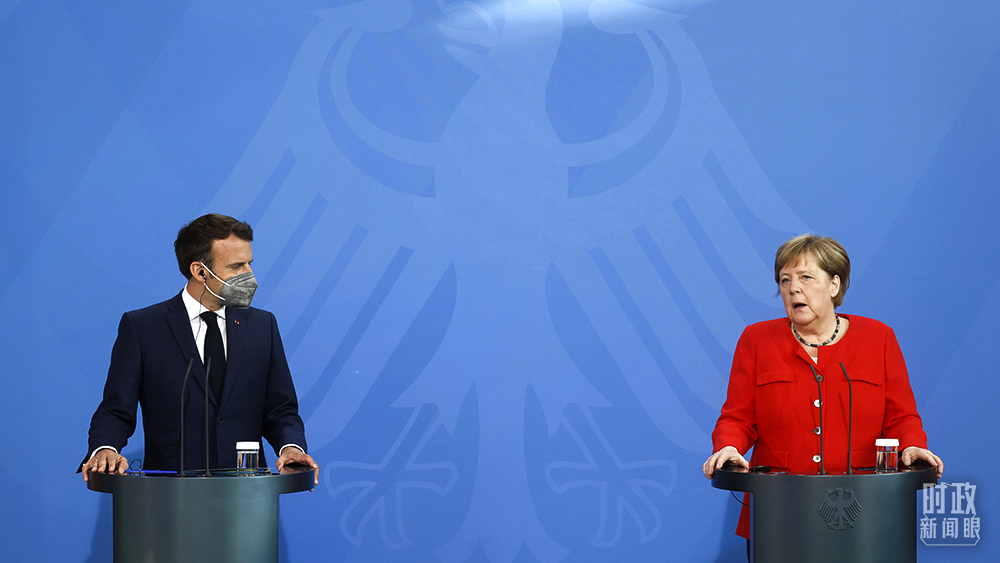 △2021年6月18日,默克爾在柏林會見了馬克龍。他們共同表示,目前還不能過早宣告疫情結束。(圖/視覺中國)