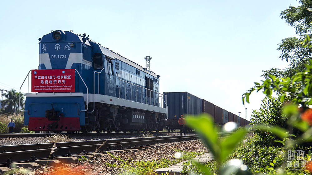 △2021年4月21日,一列滿載防疫物資的中歐班列,由廈門海滄站發往德國杜伊斯堡。(圖/視覺中國)