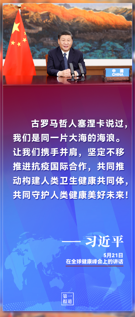 “古羅馬哲人塞涅卡說過,我們是同一片大海的海浪。讓我們攜手并肩,堅定不移推進抗疫國際合作,共同推動構建人類衛生健康共同體,共同守護人類健康美好未來!”習近平主席在全球健康峰會上再次向世界發出了團結抗疫的中國強音。