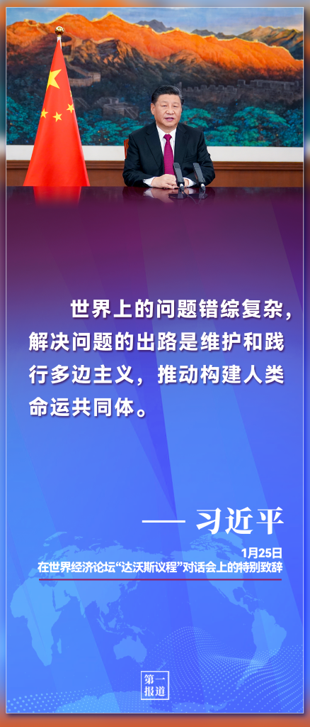 “世界上的問題錯綜復雜,解決問題的出路是維護和踐行多邊主義,推動構建人類命運共同體。”2021年世界經濟論壇“達沃斯議程”對話會上,習近平主席為后疫情時代的人類社會發展指明方向。