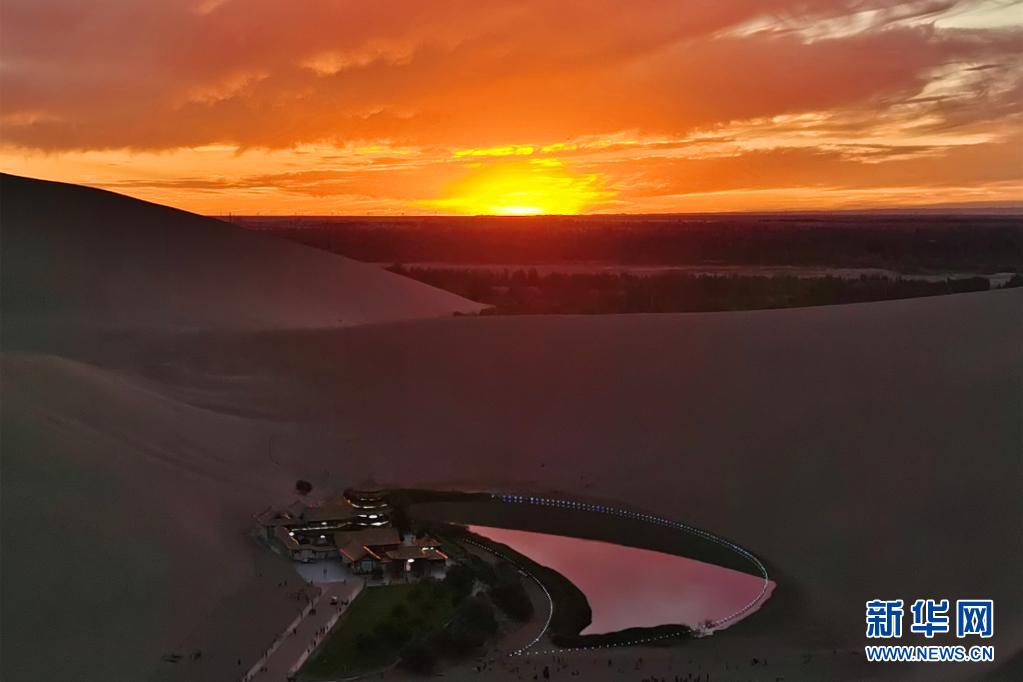 夕陽下的敦煌月牙泉(7月5日攝)。新華社記者 劉詩平 攝