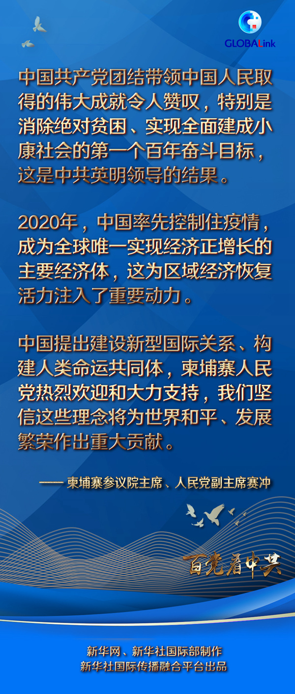 柬埔寨參議院主席、人民黨副主席賽沖日前在接受新華社記者書面采訪時(shí)說,中國共產(chǎn)黨團(tuán)結(jié)帶領(lǐng)中國人民取得的偉大成就令人贊嘆,特別是消除絕對貧困、實(shí)現(xiàn)全面建成小康社會(huì)的第一個(gè)百年奮斗目標(biāo),這是中共英明領(lǐng)導(dǎo)的結(jié)果。